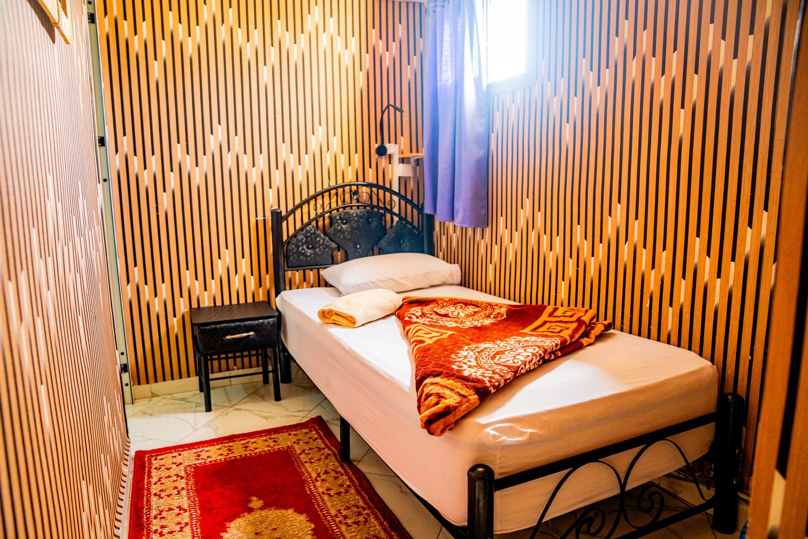 Stylish deluxe single room featuring a comfortable twin bed, warm wooden walls, and Private Bathroom. Ideal for solo travelers, business guests, or anyone seeking privacy and modern comfort